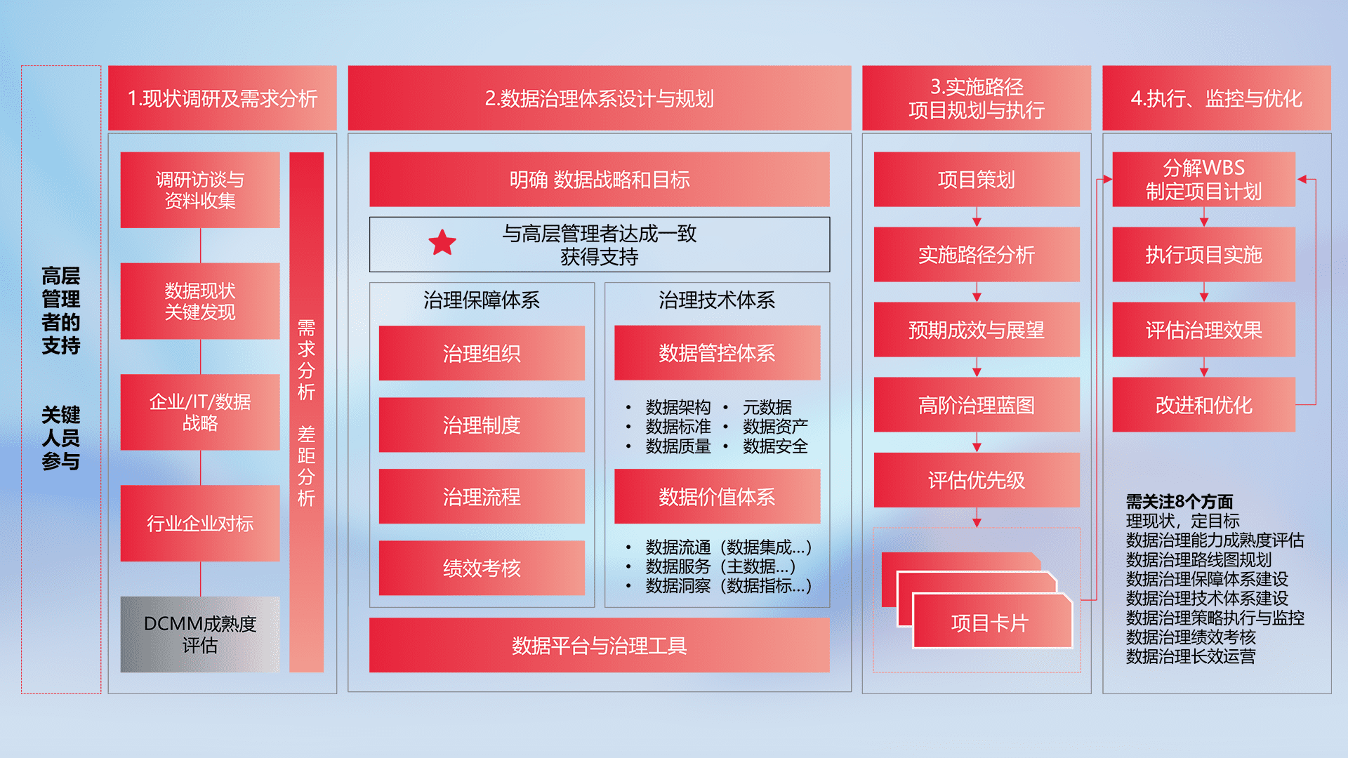 制定并执行统一的数据标准,,规范数据定义和格式,,消除冗余和不一致性,,,,实现跨部门和跨系统的数据一致性,,,为企业提供标准化的数据基础。。